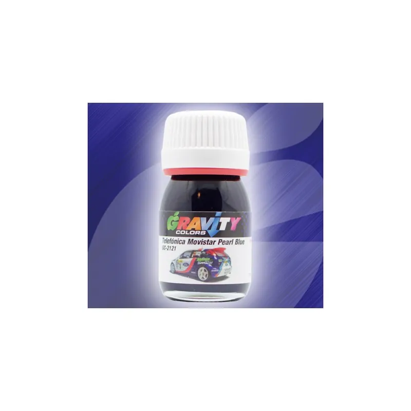 Telefónica Movistar Pearl Blue Gravity Colors Paint– GC-2121 Pearl purplish blue color used on Movistar sponsored cars and bikes. Color matched airbrush ready lacquer paint. Net volume: 1 fl.oz/30ml