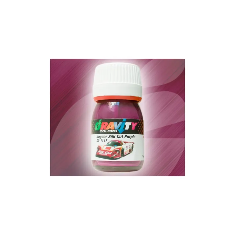 Jaguar Silk Cut Purple Gravity Colors Paint– GC-1117 Solid purple color used by Jaguar for its Silk Cut livery. Color matched airbrush ready lacquer paint. Net volume: 1 fl.oz/30ml