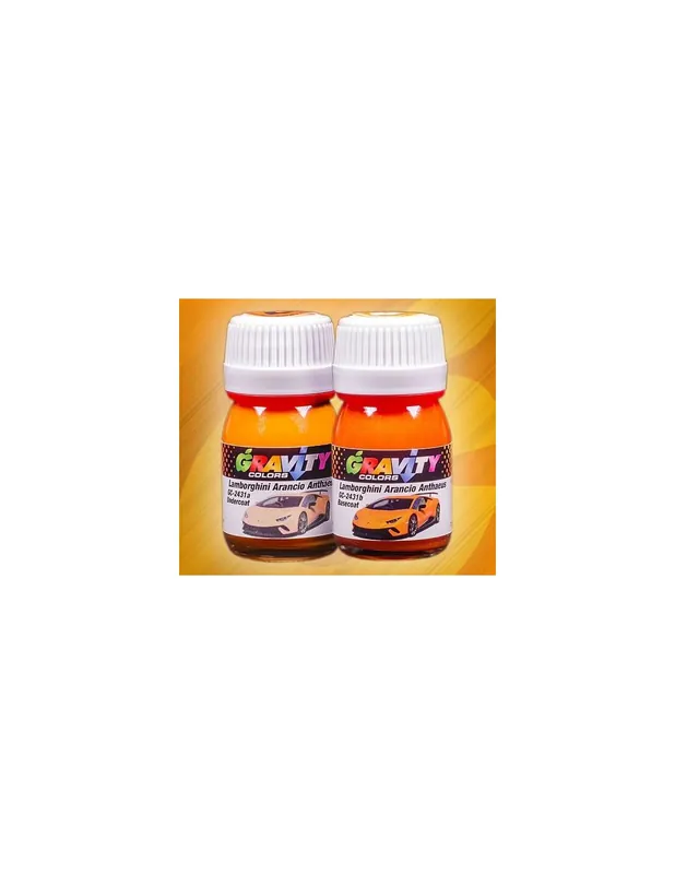 Agitar los frascos hasta que la pintura esté bien mezclada.Utilizar sólo con aerógrafo.Primero aplique GC-2431a Lamborghini Arancio Anthaeus Undercoat sobre Light Surface Primer incluso si Dark Surface Primer es el óptimo para otro color utilizado para pintar la misma pieza.A continuación, aplique la GC-2431b Lamborghini Arancio Anthaeus Basecoat sobre la GC-2431a Lamborghini Arancio Anthaeus Undercoat una vez que esté seca.Pintar con ambas pinturas en capas finas hasta conseguir la densidad de color. La pintura no debe arreglar o eliminar las imperfecciones de la superficie de plástico de su maqueta. En otras palabras, nunca aplique capas húmedas.Recomendamos utilizar una presión de aire baja, entre 15 y 20 PSI (1,0 a 1,4 BAR) al pulverizar las pinturas Gravity Colors. Esto es sólo una recomendación. La presión óptima es única para cada usuario, y depende del diámetro de la boquilla, la distancia de pulverización o la velocidad, entre otros factores.Se requiere una capa transparente mate.No utilizar cerca del calor, chispas o llamas.Utilizar en un área bien ventilada.Apretar bien el tapón después de cada uso.