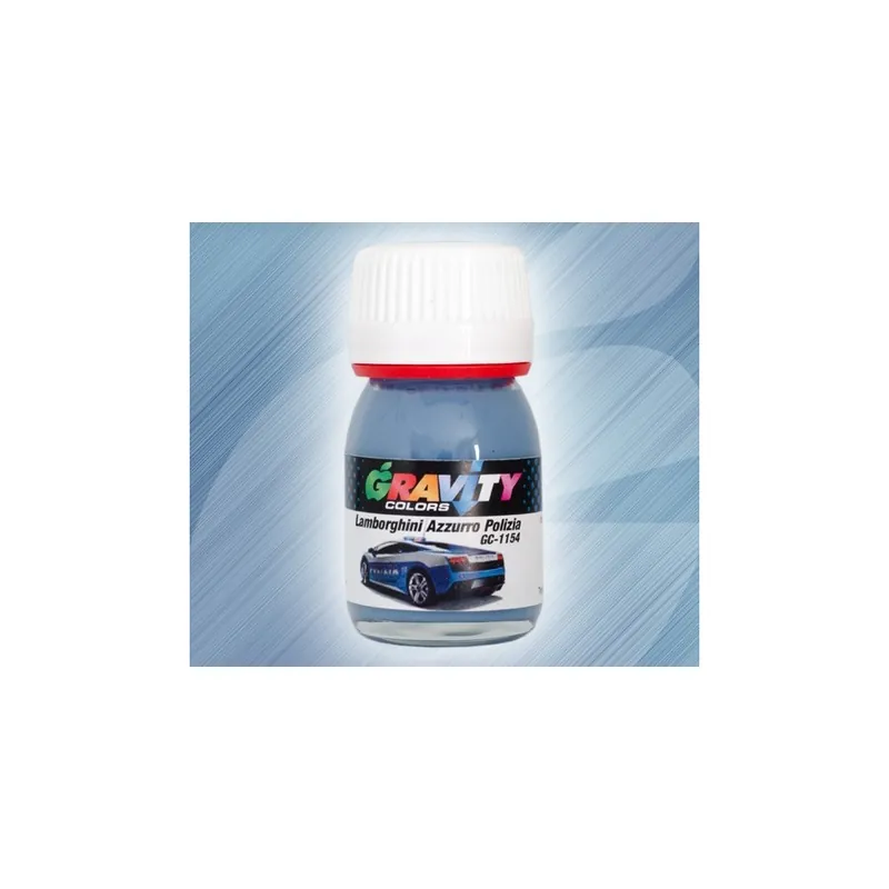 Lamborghini Azzurro Polizia Gravity Colors Paint– GC-1154Solid grayish blue color used Lamborghini for its Italian Police cars since 2004. Color matched airbrush ready lacquer paint. Net volume: 1 fl.oz/30ml