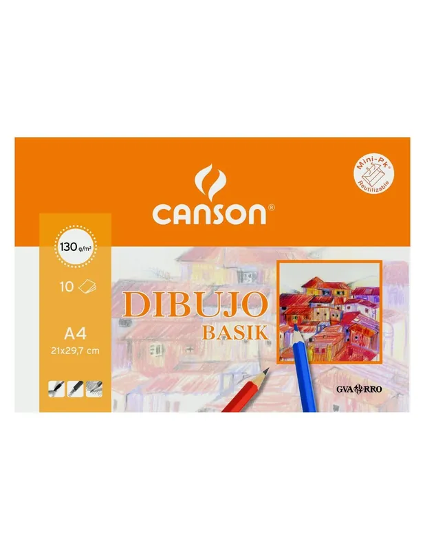 sobre con 10 láminas de dibujo minipack canson basik tamaño A4(21X29.7CM) Lisas, en papel de 130grs