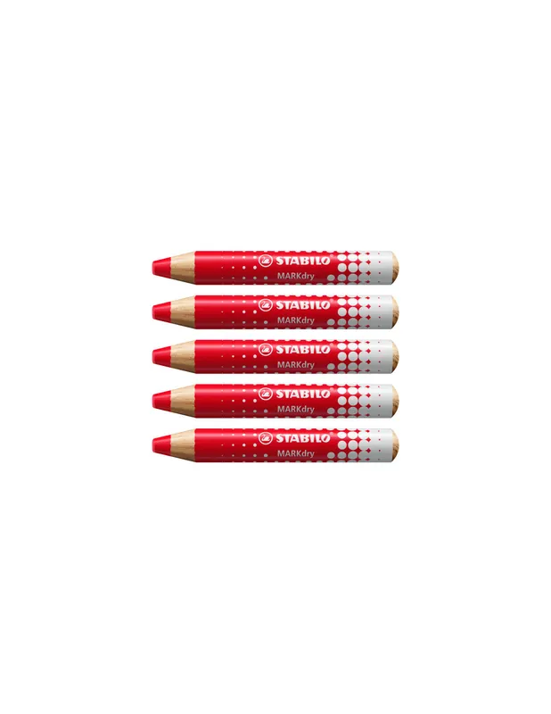 STABILO MARKdry. Cantidad por paquete: 5 pieza(s), Colores de escritura: Rojo, Forma de la carcasa: Alrededor. Ancho: 16 mm, Profundidad: 80 mm, Altura: 115 mm