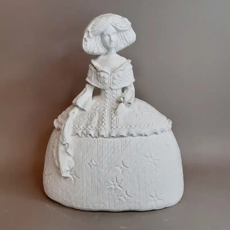 Menina de escayola modelo menina grabada 21 cm.Ultimas fotografías ejemplo de menina grabada decorada con pintura americana.
