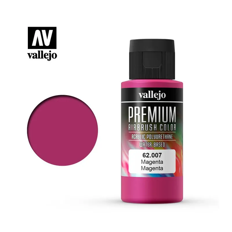 Colores acrílicos especialmente formulados para aerografía, con una óptima adherencia sobre superficies como fibra de vidrio, polietileno, policarbonato, metal y Lexan. Premium ha sido elaborado con pigmentos permanentes y una nueva resina híbrida acrílico-poliuretánica de gran resistencia. La gama de Premium está formada por colores mates y opacos, transparentes, metalizados, fluorescentes y los auxiliares específicos de la línea. Premium está especialmente indicado para pintar cascos, depósitos de motos, tablas de surf y otras superficies expuestas a grandes desgastes, y resiste impactos y agrietamientos, así como la exposición directa al calor. Los colores Premium permanecen inalterables a mezclas de combustible empleadas en R/C (hasta 35% nitro). Se recomienda aplicar Premium en sucesivas capas sobre superficies previamente imprimadas; se puede aplicar directamente o diluido con el AV Premium Reducer. Los colores forman una película homogénea de extraordinaria dureza y resistencia transcurridas unas horas tras su aplicación. Los ajustes del compresor recomendados rondan los 15-20 PSI o 0.5 a 1 kg. Para una protección especialmente resistente se recomienda un barniz final uretánico (2K). Los utensilios se pueden limpiar con agua. Premium Color no es inflamable y no contiene disolventes.
