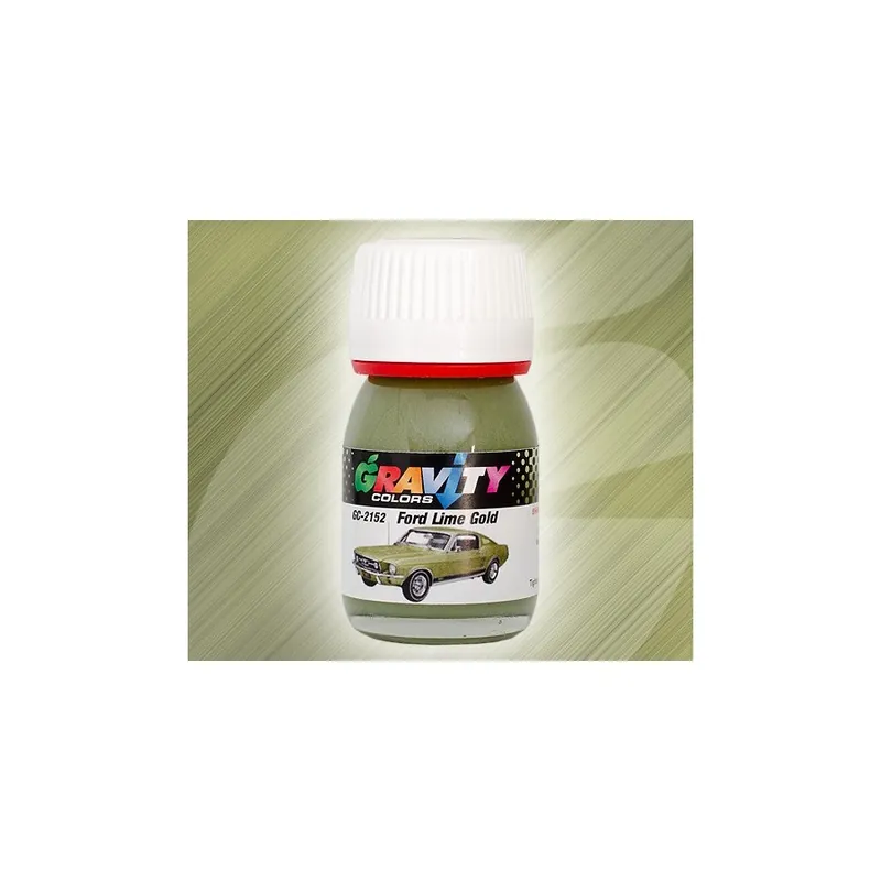 Ford Lime Gold Gravity Colors Paint– GC-2152Metallic greenish gold color used by Ford between 1967 and 1970. Color matched airbrush ready lacquer paint. Net volume: 1 fl.oz/30ml