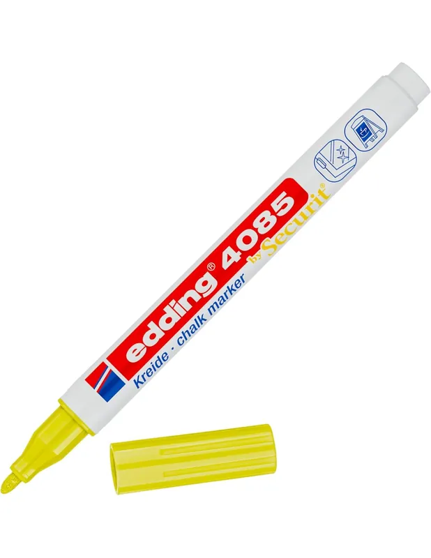 Rotuladores de tiza de punta fina para vidrio, pizarras oscuras y otras superficies no porosas; la tiza se limpia con un paño húmedo