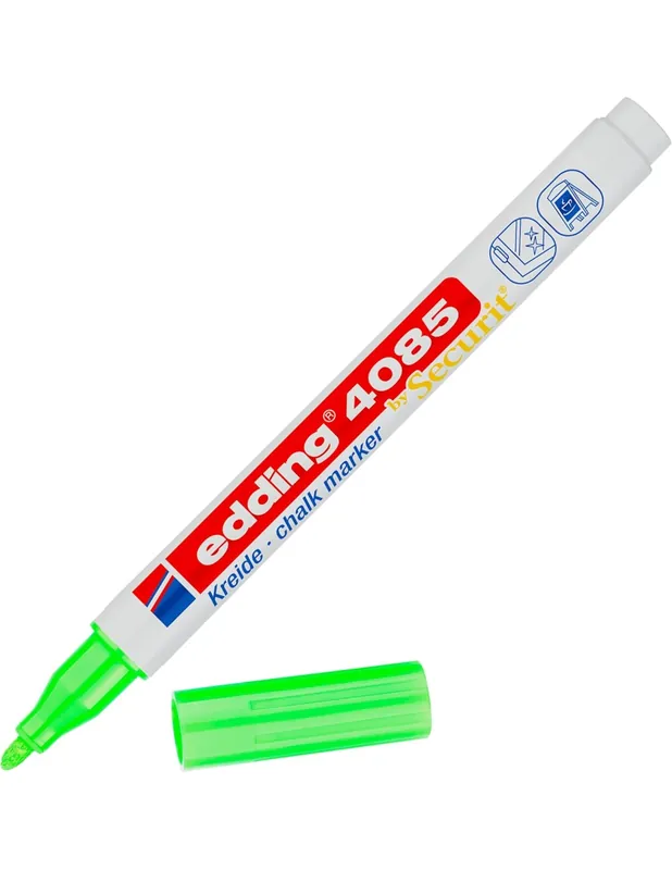 Rotuladores de tiza de punta fina para vidrio, pizarras oscuras y otras superficies no porosas; la tiza se limpia con un paño húmedo