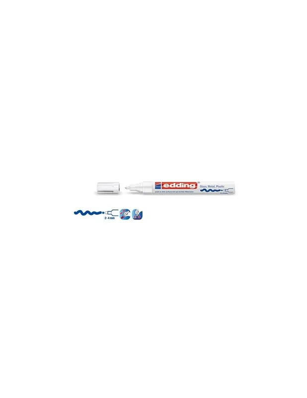 A la hora de trazar líneas y adornos brillantes sobre superficies lisas como vidrio, metal o plástico, nada hay tan práctico como nuestro marcador edding 750 de efecto lacado. Con su cómoda punta redondeada nos permite embellecer con facilidad tulipas de cristal, floreros de cerámica glaseada, sujetalibros de madera lacada, bandejas metálicas… Las posibilidades son infinitas. Sus colores, vivos y resistentes (entre ellos varios tonos metálicos) irradian frescor y vivacidad en su entorno, al gusto de quien los utiliza. Si lo que busca es un trazo más fino, no dude en recurrir al marcador edding 751 y si necesita una escritura o un adorno muy delicado, opte por el modelo edding 780.El marcador edding 750 tiene una punta redonda de 2-4 mm de grosor y está disponible en 14 colores distintos. Antes de utilizarlo, sin quitar el capuchón, sacuda el rotulador vigorosamente, retire el capuchón, apoye la punta en un papel desechable y bombee con cuidado hasta que la punta absorba la tinta. El marcador edding 750 ya está listo para ser usado. La tinta apenas desprende olor, y una vez seca es resistente al agua, los roces, la luz y las altas temperaturas.