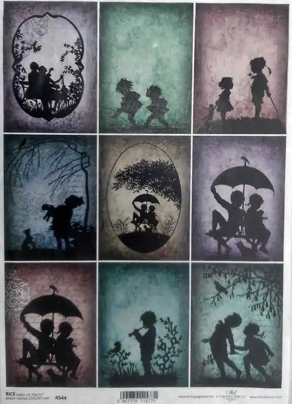 Es un papel muy ligero, semi-transparente y de color blanco natural. Tiene fibras irregulares y con distintos grosores y direcciones, que se aprecian a simple vista. El papel es fuerte y resistente, No se rompe en las manos. No se arrugaBonitos diseños con intensos colores, que no destiñen ni se degradan con un pegamento.Cada estampa hay que arrancarla de la hoja y no recortarla usando tijeras. El borde irregular del papel de arroz, es muy fácil de esconder. Se puede pegar fácilmente en todas las superficies, usadas en decoupage (vidrio, madera, dm, poliestireno, etc.)La obra final se protege dando algunas capas de barniz, para un resultado óptimo.