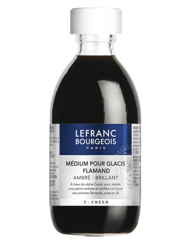 A base de resina copal, para obtener una capa vidiriosa al estilo de los pintores flamencos.Asienta en 2 horas.Ambarino brillante LEFRANC BOURGEOIS ADITIVO OLEO 250ML SECATIVO FLAMENCO