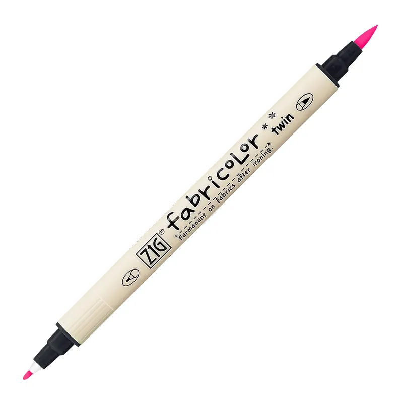 ROTULADOR TEXTIL ZIG FABRICOLOR TWIN de KURETAKERotulador para tela con pigmento a base de agua, sus colores son transparentes por lo que son recomendables para prendas de colores claros. Doble punta: Una punta fina para detalles y otra punta de pincel flexible muy polivalente.