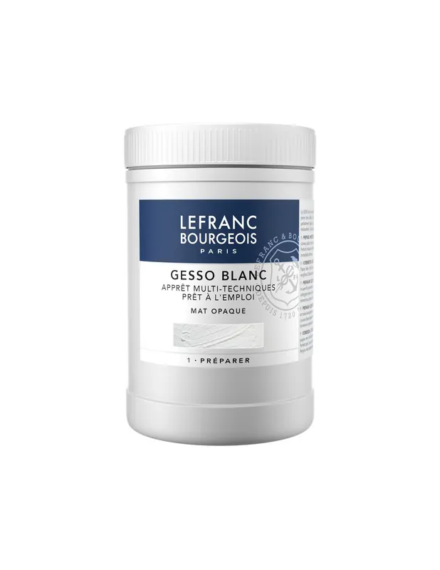 El gesso acrílico Lefranc de 1000 ml es un preparador de superficies para pintura acrílica. Su función principal es preparar y sellar el lienzo, papel o madera, creando una base uniforme y absorbente para que la pintura se adhiera correctamente. El gesso acrílico Lefranc proporciona una superficie lisa y duradera que facilita la aplicación de capas de pintura y mejora la intensidad de los colores.