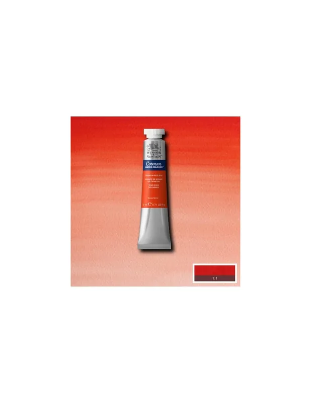 Viveza, transparencia y pureza de color. Gama de colores complementaria de la serie Artists’ de Winsor & Newton, caracterizada por una concentración menor de pigmento y la sustitución de los pigmentos más caros por otros más económicos. Así, W&N consigue a un precio único una acuarela de excelente poder colorante y optima transparencia a precio muy asequible. WINSOR & NEWTON ACUARELA COTMAN 8ML TONO ROJO DE CADMIO