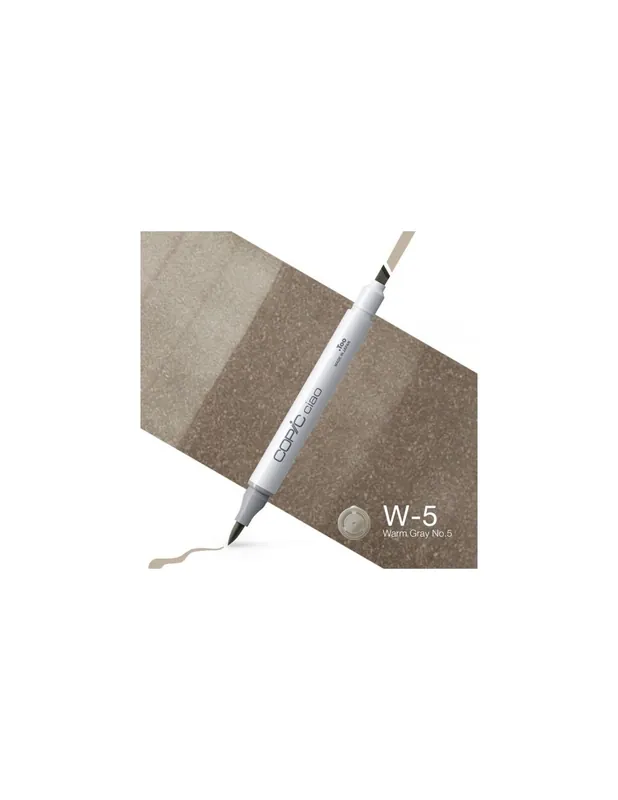 ROTULADOR COPIC CIAO W5 WARM GRAY 5Los rotuladores Copic Ciao son la versión económica de los rotuladores Copic. Tienen la misma calidad, usan la misma tinta y también son recargables . Son un poco más económicos que los otros rotuladores copic ya que tienen menos capacidad de tinta.Los rotuladores Copic ciao tienen dos puntas: una biselada para colorear grandes áreas y otra de pincel muy flexible que es ideal para dibujar.La tinta es a base de alcohol, es permanente y no es tóxica. Cuando se seca está libre de ácido. Con un frasco de tinta copic de 25 ml puedes recargar hasta 16 veces un copic ciao.
