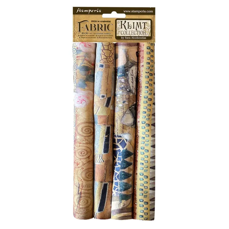 Set de 4 Telas de Encuadernar Klimt Stamperia 30×30 cm.La tela ofrece grandes prestaciones para hacer trabajos de estampación con foil, embossing y serigrafía. Su uso es ideal para encuadernar libros, libretas, álbumes de fotos, archivadores, menus y también para forrar cajas de cartón o madera, adaptándose su uso al scrapbooking y a las manualidades en general.Se pega con cola blanca especial de encuadernar.Composición: 100% poliéster.Tamaño: 30 x 30 cm