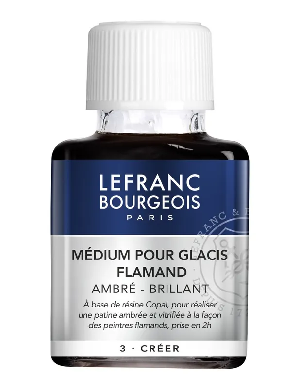 A base de resina copal, para obtener una capa vidiriosa al estilo de los pintores flamencos.Asienta en 2 horas.Ambarino brillante LEFRANC BOURGEOIS ADITIVO OLEO 75ML SECATIVO FLAMENCO