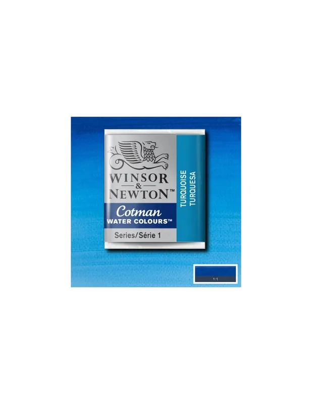 Viveza, transparencia y pureza de color. Gama de colores complementaria de la serie Artists’ de Winsor & Newton, caracterizada por una concentración menor de pigmento y la sustitución de los pigmentos más caros por otros más económicos. Así, W&N consigue a un precio único una acuarela de excelente poder colorante y optima transparencia a precio muy asequible. WINSOR & NEWTON ACUARELA COTMAN 1/2 GODET TURQUESA
