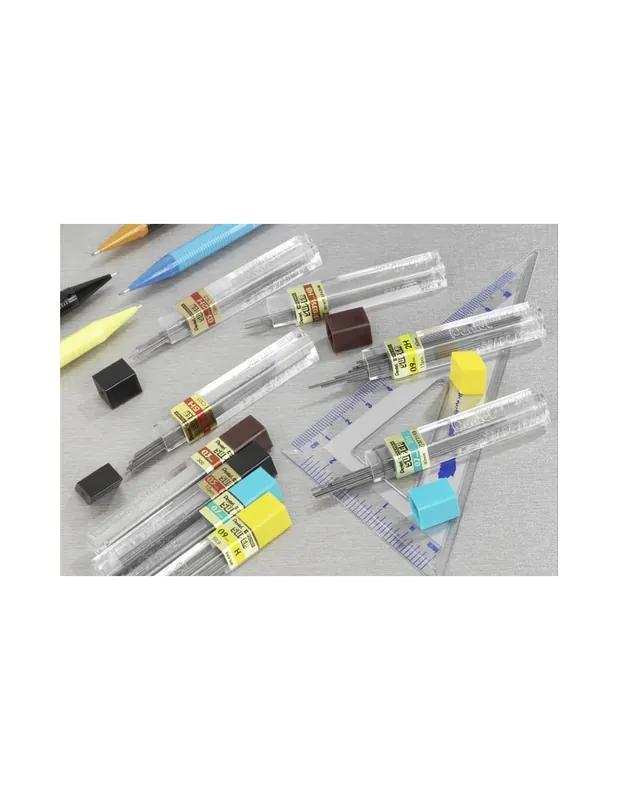 Minas para lápiz portaminas. Plomos de súper alto polímero.El proceso patentado ofrece una mayor resistencia al plomo y una rotura mínima.Longitud 60 mm. Tubo con 12 piezas.