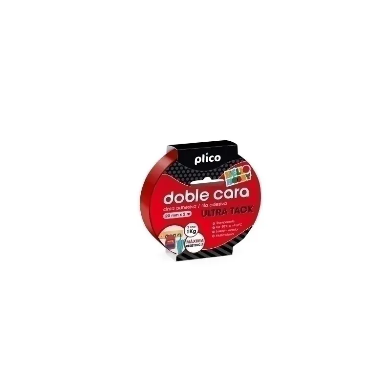 CINTA ADHESIVA DOBLE CARA PLICO rollo 3×20 ULTRA TACKCategoría: Cintas adhesivas doble cara Familia: Adhesivos, embalaje y envío Subfamilia: Cintas adhesivas y de embalaje . EAN: 8437013133845Para consultar cualquier característica adicional puede llamarnos en cualquier momento o mandar un correo a [email protected]. Gracias