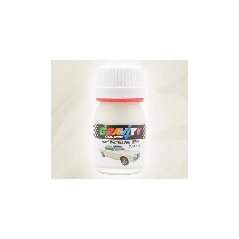 Ford Wimbledon White Gravity Colors Paint– GC-1139 Solid off white used by Ford between 1967 and 1987. Color matched airbrush ready lacquer paint. Net volume: 1 fl.oz/30ml