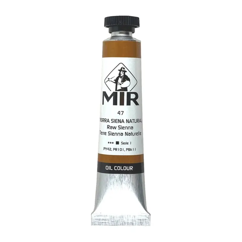 Óleo de calidad extra-fina, constituido por pigmentos específicos para bellas artes, de alta estabilidad a la luz y luminosidad. Los aceites vegetales secantes que componen el óleo Mir son escogidos para que no modifiquen el tono del pigmento, sequen uniformemente en una capa incolora, de máxima transparencia y homogeneidad.Parte fundamental de la fabricación del óleo Mir es el refinado de la pasta inicial de pigmento y aceite. Esta masa se hace pasar a través de unos molinos compuestos por tres rodillos de acero, tantas veces como sea necesario, para conseguir la perfecta dispersión de las partículas de pigmento en el medio del aceite. De esta forma el óleo obtendrá sus características de finura, cremosidad, brillo y poder tintóreo y se favorece la estabilidad en el tiempo de la pintura tanto dentro del tubo como una vez aplicada.Cada pigmento tiene un tiempo de secado natural, diferente según las condiciones de temperatura y humedad. En la fabricación del óleo Mir intentamos acercar los diferentes tiempos de secado a fin de que los colores de una obra sequen de forma pareja pero no queremos con ello comprometer la estabilidad de la pintura por lo que siempre habrán diferencias que el artista asume como consustanciales a la técnica del óleo.La gama de óleo Mir contiene básicamente colores cubrientes complementada con semi y totalmente transparentes. La cubrición es una propiedad intrínseca del pigmento en el medio aceite y el artista sabe hacer uso tanto de los pigmentos que tapan como de aquellos transparentes que le permiten sutiles efectos de veladuras.