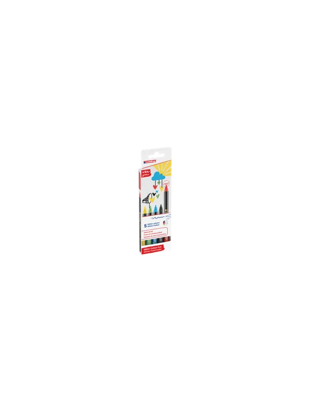 Edding 4-1200-5-3. Número de colores: 5 Colores, Colores de escritura: Aqua, Negro, Verde claro, Rojo, Amarillo, Tipo de punta: Punta redonda. Ancho: 60 mm, Profundidad: 12 mm, Altura: 170 mm. Cantidad por paquete: 1 pieza(s)