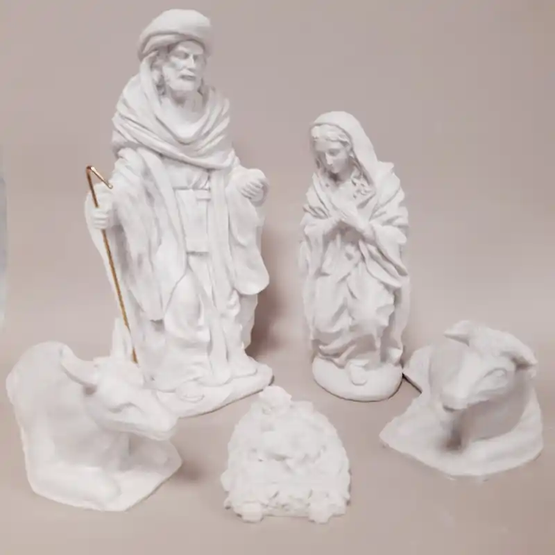 Este hermoso belén de 5 piezas, elaborado en poliresina de alta calidad, es el complemento perfecto para tu decoración navideña. Cada figura está cuidadosamente detallada, representando la escena del nacimiento con un acabado perfecto que ofrece un toque elegante y tradicional. Ideal para colocar en cualquier espacio de tu hogar, desde la sala de estar hasta el recibidor, este set incluye las figuras de la Virgen María, San José, el niño Jesús y los dos animales, el buey y la mula. Este Misterio aportará calidez y espíritu navideño a tu hogar. Completa tu Nacimiento con las tres figuras de los Reyes Magos ACH9006967