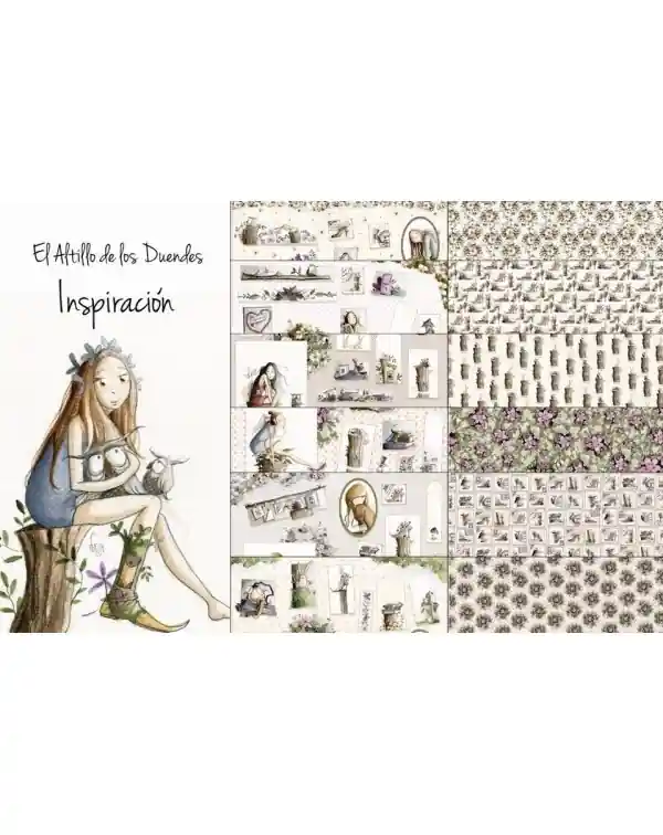 Kit INSPIRACIÓN de EL ALTILLO DE LOS DUENDESColección completa de 6 papeles decorados a doble cara más la carátula también aprovechable.30.5×30.5 cm