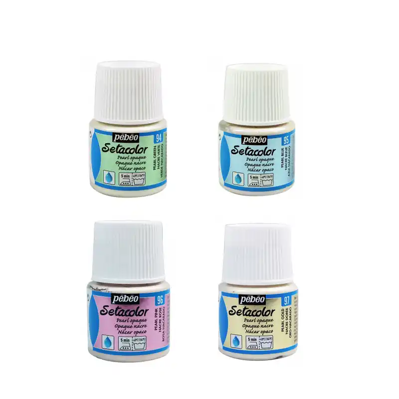 Pintura para tela efecto nacarado.Fijación: dos posibilidades; 1) Planchar durante 5 minutos, posición algodón, sin vapor, al reverso de la tela. 2) en horno doméstico, durante 5 minutos a 150º C (temperatura estabilizada).Mantenimiento (de los tejidos decorados): después de la fijación los tejidos decorados resisten el lavado a máquina a 40º o a mano. No se recomienda la limpieza en seco.