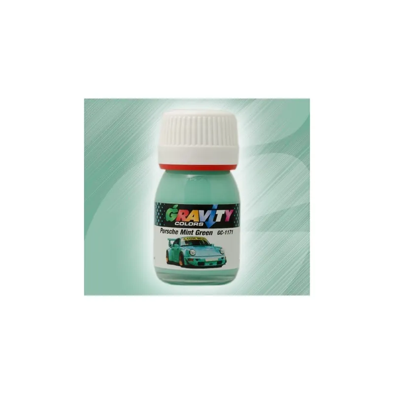 Porsche Mint Green Gravity Colors Paint– GC-1171Solid light green color coded by Porsche as L22R, used since 1991.Color matched airbrush ready lacquer paint. Net volume: 1 fl.oz/30ml