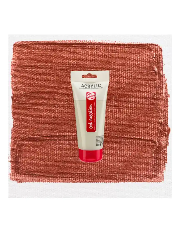 ArtCreation Essentials ofrece un acrílico estudio de calidad fiable a base del 100% de resina de acrilato. La pintura es pastosa, cuando está seca tiene un brillo sedoso y se puede sobrepintar casi de inmediato. La pintura acrílica Talens ArtCreation Essentials puede usarse directamente o diluido con agua, y una vez seco, es resistente al agua. Por su buena adherencia, con esta pintura se puede trabajar sobre cualquier sustrato que sea algo absorbente y esté libre de grasa y polvo, como el lienzo y el papel, pero también el yeso, el tablero, la madera, la piedra o el cementoACRILICO ART CREATION 200ML 805 COBRE