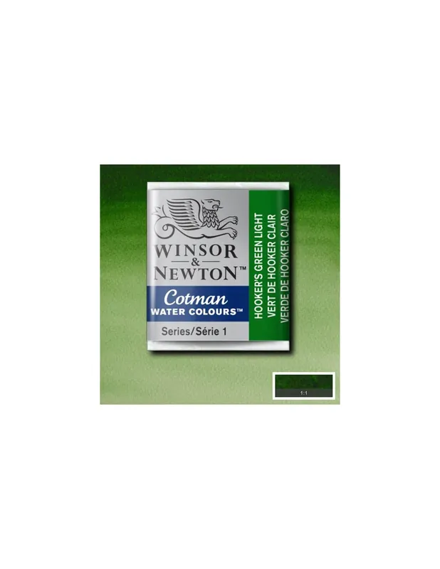 Viveza, transparencia y pureza de color. Gama de colores complementaria de la serie Artists’ de Winsor & Newton, caracterizada por una concentración menor de pigmento y la sustitución de los pigmentos más caros por otros más económicos. Así, W&N consigue a un precio único una acuarela de excelente poder colorante y optima transparencia a precio muy asequible. WINSOR & NEWTON ACUARELA COTMAN 1/2 GODET VERDE DE HOOKER CLARO