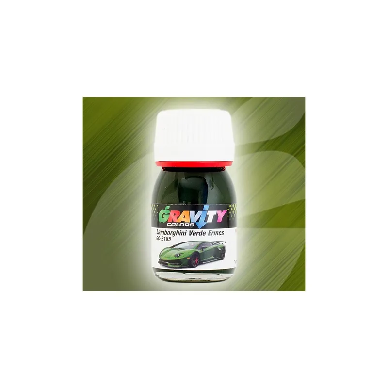 Lamborghini Verde Ermes Gravity Colors Paint– GC-2185Pearl yellowish green color used by Lamborghini since 2019. Color matched airbrush ready lacquer paint. Net volume: 1 fl.oz/30ml