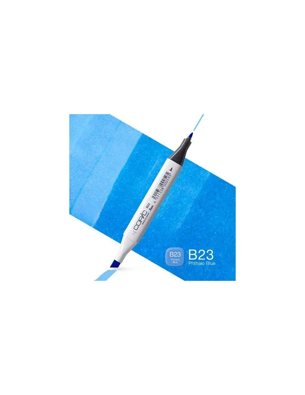 ROTULADOR COPIC CLASSIC B23 PHTHALO BLUERotulador recargable de doble punta ( ancha y fina).El sistema profesional Copic Classic ha estado diseñado hasta el útimo detalle.El rotulador tiene una forma cuadrada con cantos suaves y redondeados.La codificación sistemática con letras y números a los dos lados de los tapones simplifica la identificación del color.Dispone de 7 tipos de puntas alternativas.Si buscas dónde comprar copic, no hace falta que busques más en nuestra tienda online encontrarás toda la gama de productos Copic, y al precio mínimo garantizado!