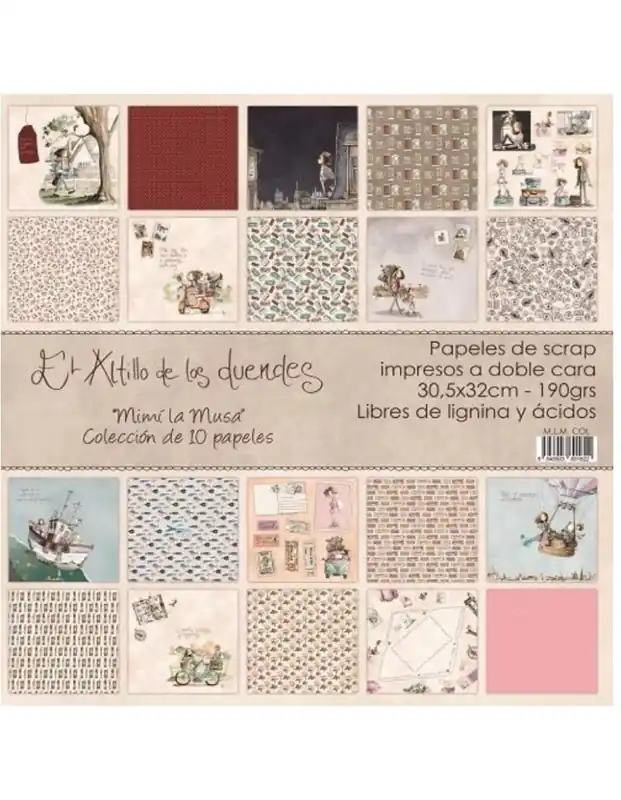 Kit MIMÍ LA MUSA de EL ALTILLO DE LOS DUENDES10 papeles, uno de cada modelo de la colección, más una carátula de la misma calidad de papel que la colección , aprovechable por ambas caras.Se presenta embolsado.Papel a doble cara de primera calidad30.5×30.5 cm190 gr.