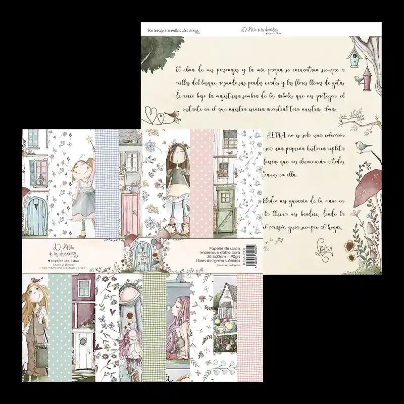 Kit UN BOSQUE A ORILLAS DEL ALMA de EL ALTILLO DE LOS DUENDESCon esta nueva colección, Nevy nos vuelve a tocar el alma. Consta de 10 papeles a doble cara, más la portada aprovechable.Papel 190 gr. sin ácidos ni ligninas. 30.5 x30.5 cm