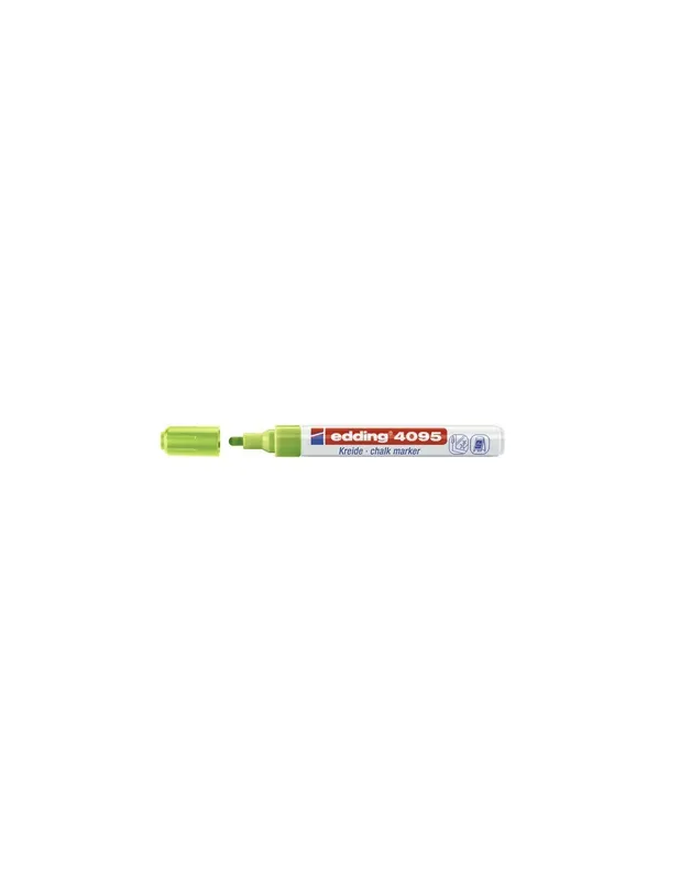 El edding 4095 marcador de tiza está disponible en 9 vibrantes colores; los edding 4090 y edding 4085 marcadores de tiza, en trazos adicionales