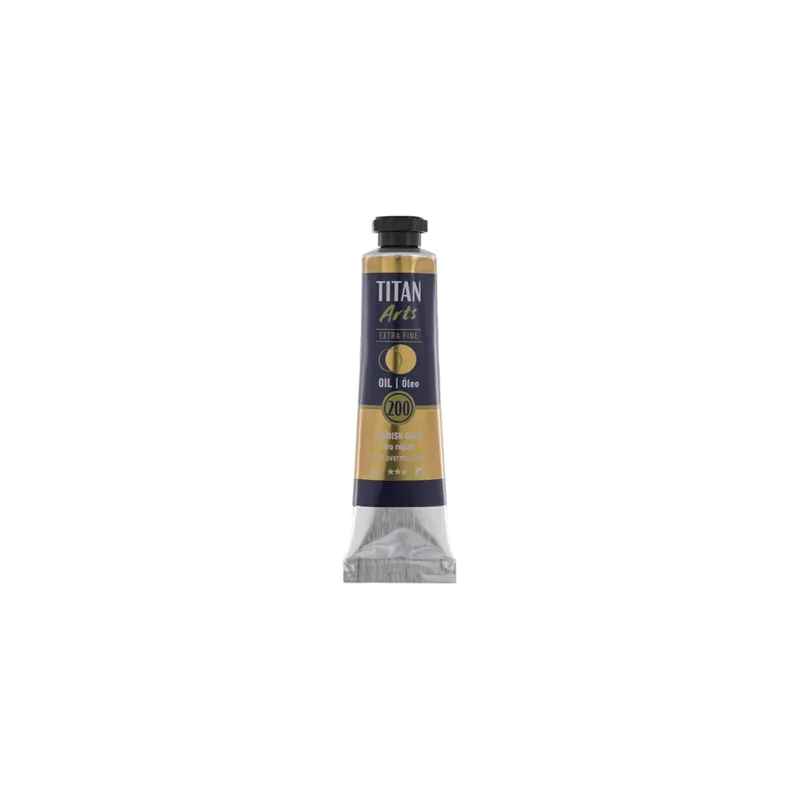 TITAN Óleo Extrafino 20ml Especial para aplicar sobre lienzos de lino, algodón u otros, debidamente preparados. (Colores orientativos según carta del fabricante)Los colores al óleo TITAN Arts Extra Fine esta pensados para los artistas más exigentes, que buscan una calidad extrafina. La pintura al óleo se elabora de forma tradicional con los mejores pigmentos finamente molidos, aportando un óptimo poder de colorante gracias a la alta concentración de pigmento. La gama ofrece colores muy puros e intensos y un grado máximo de resistencia a la luz con una gran durabilidad de la capa de pintura. Oro rojizo N°200. Tubo 20 ml.También puede aplicarse sobre otros soportes, como madera, táblex, cartón, etc., siempre que estén impermeabilizados con una adecuada preparación, para que tengan una buena adherencia.Secado a 23ºC 60 % HR: 1 día – 15 días (según pigmentación).Los tiempos de secado, se corresponden a una aplicación de un grosor aproximado entre 0,1 y 0,5mm.Métodos de Aplicación: Pincel, paletina o espátula.Limpieza de utensilios: Limpia Pinceles, disolvente.Presentación: Tubos: 20 ml, 60 ml y 200ml