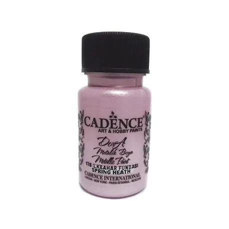 DORA METALLIC de CADENCEPintura metalizada al agua de alta calidad, usada principalmente para manualidades decorativas, Home Decor, mix media… Sus finísimos granos metálicos le dan a esta pintura un brillo excepcional.Presentada en botes de 50 ml.Gran poder de cubrición.Dispone de certificación europea CE y EN71Para un efecto aun más brillante se recomienda aplicar dos capas de pintura muy finas.