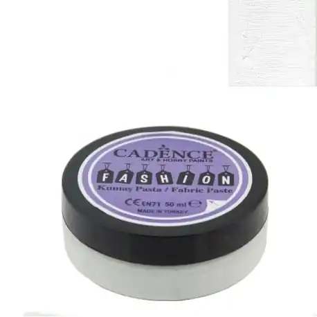 Pasta Textil FASHION de CADENCE. Con base de agua.Para crear efectos dimensionales sobre tejidos. Para su fijación en la tela es necesario planchar la prenda del revés 24h tras su secado. El tiempo de secado puede variar en función a la capa aplicada.Producto no tóxico. Dispone de certificado europeo CE y EN71.