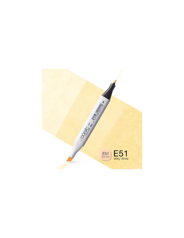 ROTULADOR COPIC CLASSIC E51 MILKY WHITERotulador recargable de doble punta ( ancha y fina).El sistema profesional Copic Classic ha estado diseñado hasta el útimo detalle.El rotulador tiene una forma cuadrada con cantos suaves y redondeados.La codificación sistemática con letras y números a los dos lados de los tapones simplifica la identificación del color.Dispone de 7 tipos de puntas alternativas.Si buscas dónde comprar copic, no hace falta que busques más en nuestra tienda online encontrarás toda la gama de productos Copic, y al precio mínimo garantizado!