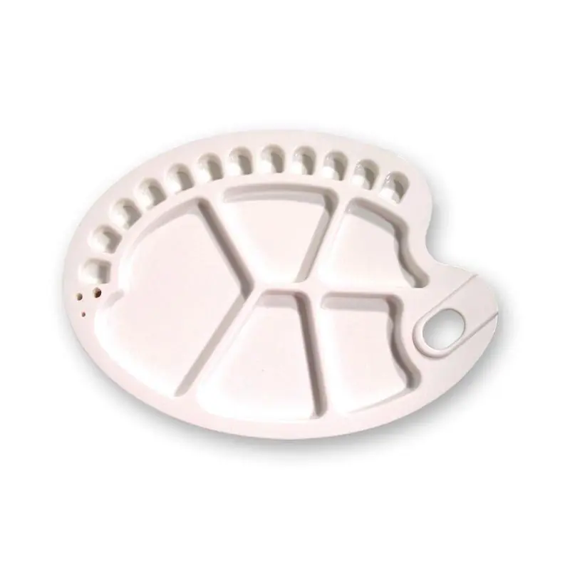 Paleta plástico ovalada 35x25cm.12 Pocillos pequeños.5 Pocillos grandes.3 Porta pinceles.