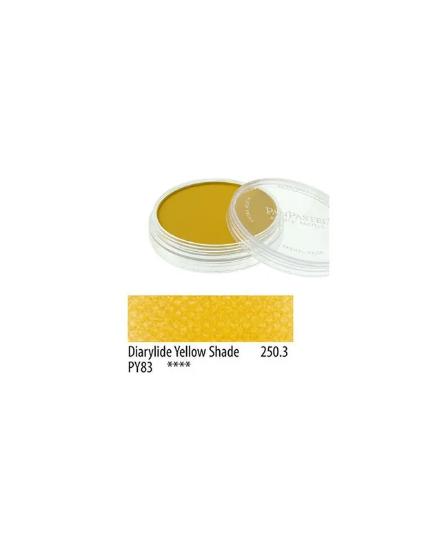 PANPASTEL 9ml 250.3 Diarylide Amarillo sombraLos colores PanPastel son totalmente compatibles con los pasteles tradicionales, permitiendo aplicar técnicas de pintura con gran facilidad. Cada bote de esta gama de alta calidad facilita la aplicación gracias a su diseño innovador.Disponibles en una gama de 80 colores más 6 colores metálicos.Colores muy pigmentados con una excelente resistencia a la luz.Totalmente borrables y con un rendimiento superior.Cada bote contiene un 40% más de material que la mayoría de pasteles en barra.