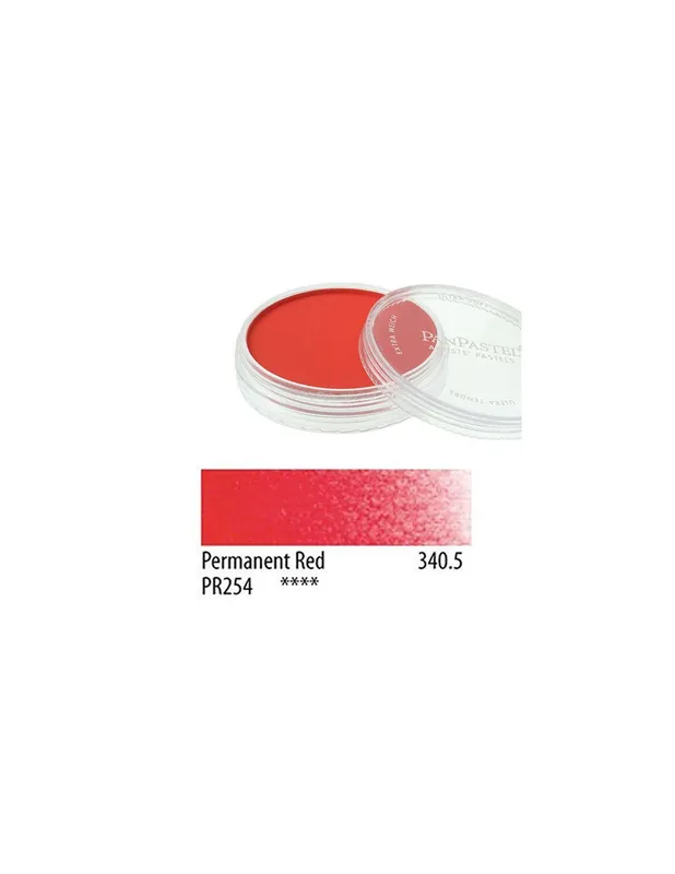 PANPASTEL 9ml 340.5 Permanente RojoLos colores PanPastel son totalmente compatibles con los pasteles tradicionales, permitiendo aplicar técnicas de pintura con gran facilidad. Cada bote de esta gama de alta calidad facilita la aplicación gracias a su diseño innovador.Disponibles en una gama de 80 colores más 6 colores metálicos.Colores muy pigmentados con una excelente resistencia a la luz.Totalmente borrables y con un rendimiento superior.Cada bote contiene un 40% más de material que la mayoría de pasteles en barra.