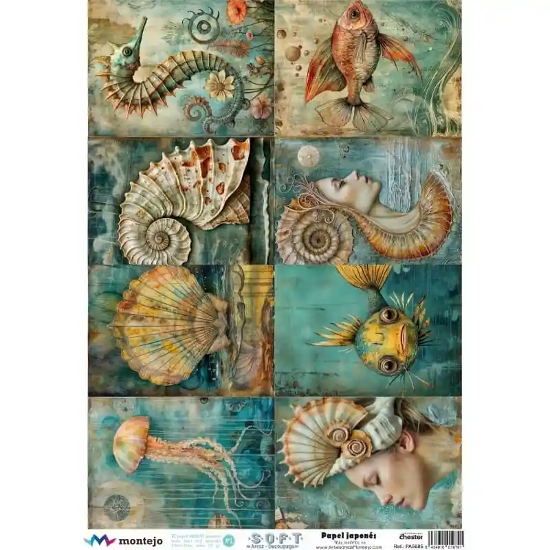 PAPEL ARROZ JAPONÉS SOFT A3 ELEMENTOS MARINOS Garantía De Devolución De Dinero