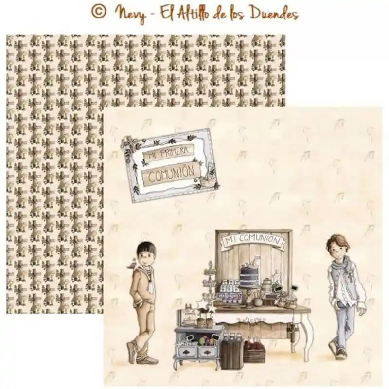 PAPEL SCRAP SUELTO de EL ALTILLO DE LOS DUENDES, Colección comunión niña y niño. Papel 4/6.Doble cara30x30 cmEl Altillo de los Duendes190 gr.
