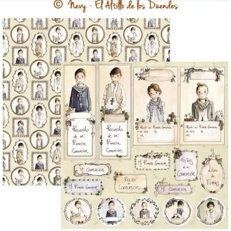 PAPEL SCRAP SUELTO de EL ALTILLO DE LOS DUENDES. Colección comunión niña y niño. Papel 5/6.Doble cara30x30 cmEl Altillo de los Duendes190 gr.