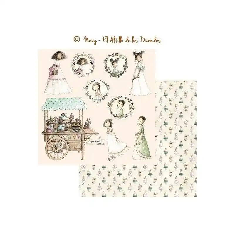 PAPEL SCRAP SUELTO de EL ALTILLO DE LOS DUENDES. Colección Ellas celebran su comunión. Papel 5/6.Doble cara30x30 cmEl Altillo de los Duendes190 gr.