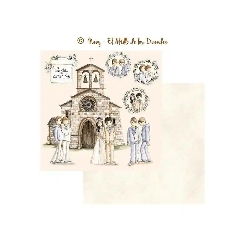 PAPEL SCRAP SUELTO de EL ALTILLO DE LOS DUENDES. Colección Ellos celebran su comunión. Papel 3/6.Doble cara30x30 cmEl Altillo de los Duendes190 gr.