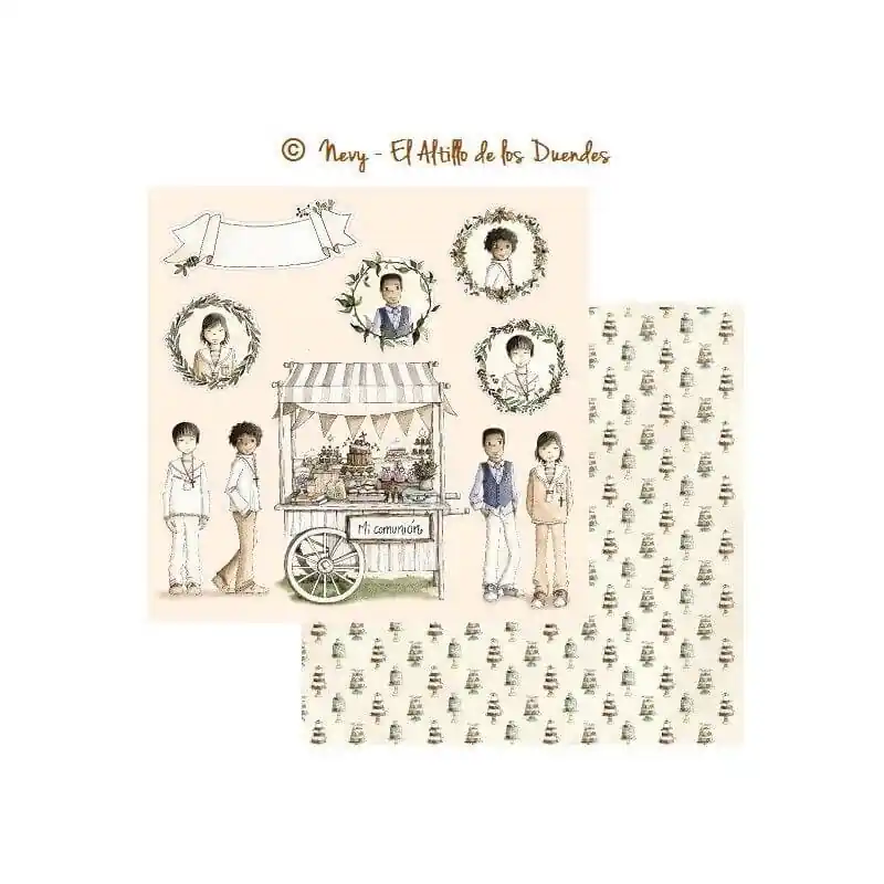 PAPEL SCRAP SUELTO de EL ALTILLO DE LOS DUENDES. Colección Ellos celebran su comunión. Papel 5/6.Doble cara30x30 cmEl Altillo de los Duendes190 gr.